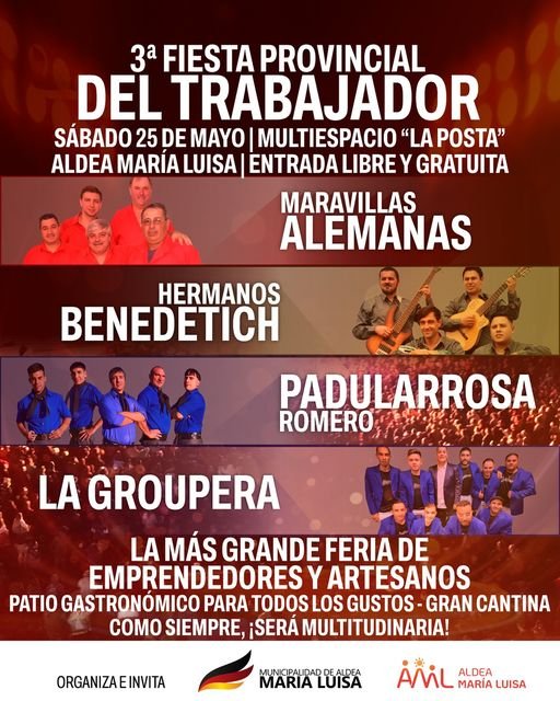 Rápidamente, el Municipio confirmó que el sábado 25 de mayo será la nueva cita para participar y disfrutar del evento, que tendrá entrada libre y gratuita. El espectáculo artístico estará a cargo de Maravillas Alemanas, Los Hermanos Benedetich, Padularrosa Romero y La Groupera.