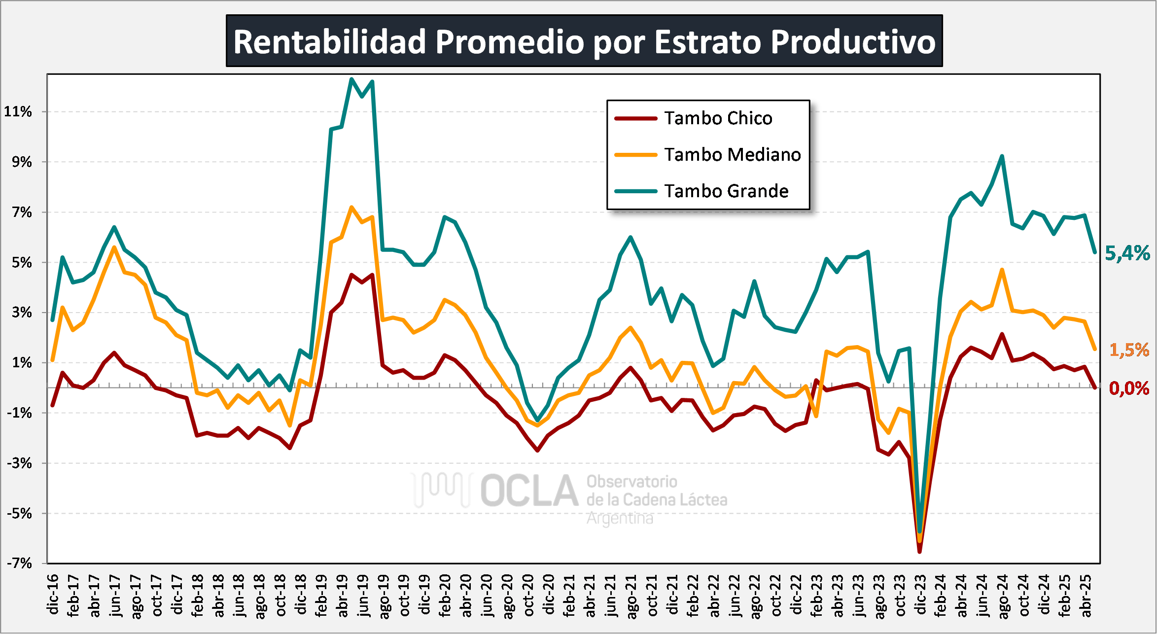 Según un reciente informe del Observatorio de la Cadena Láctea Argentina, esa diferencia en la rentabilidad según el tamaño del tambo “permite deducir que las mayores escalas de producción también conducen a mayor productividad y eficiencia que se ve reflejada en los resultados económicos obtenidos”.