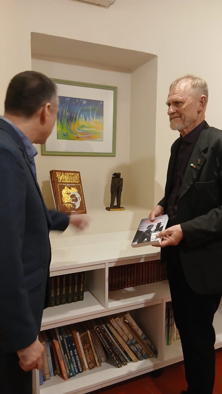 La primera actividad se realizó en el Concejo Deliberante, donde la obra fue declarada de interés cultural mediante la Resolución 10/2025. Por la tarde, en la Casa de la Cultura – Morada del Volga, el autor compartió con vecinos de la localidad y la región el proceso creativo y el trasfondo histórico de su novela, acompañado por el coordinador de Cultura, Darío Wendler.