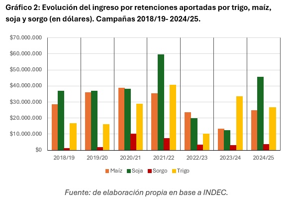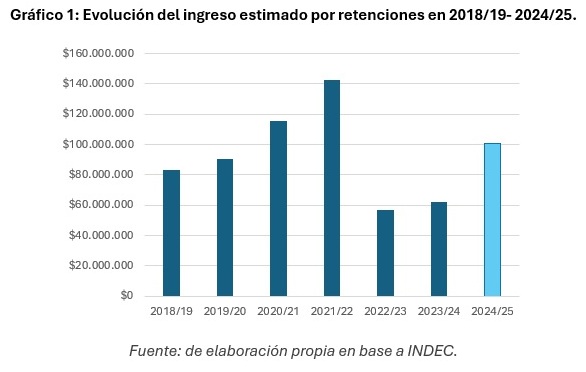 Los resultados muestran que el máximo de aportes se registró durante la campaña 2021/22, con un ingreso fiscal cercano a 143 millones de dólares, impulsado por precios internacionales en alza y elevados volúmenes exportados.