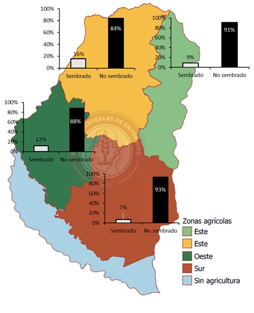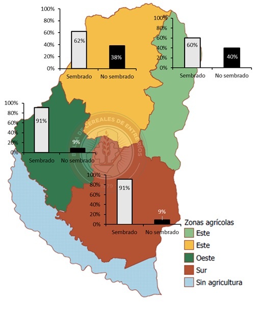 Figura 2: Avance de la siembra de soja de primera por zonas en Entre Ríos.