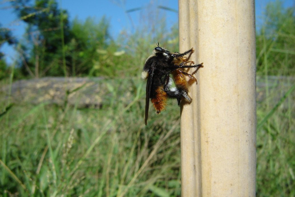 “El moscardón representa un problema para la apicultura, ya que es un depredador de abejas. Se sitúa en la vegetación alta, cerca de las colmenas y captura a las abejas en vuelo para alimentarse en los momentos de mayor actividad de forrajeo de estas”, explicó Mauricio Rabinovich, referente del Programa de Sanidad Apícola del Senasa.