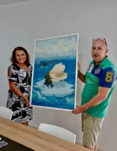 El viernes 1º de marzo la Comuna de Aldea Spatzenkutter recibió la donación de la obra de arte “Sonata en el Mar” realizada sobre óleo por la artista Dra. Lision María Cristina Cassaniti.